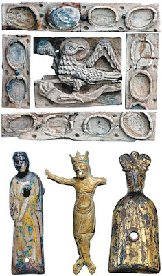 Another extraordinary find came to light in 2018: it is a book cover made of bone, with figures of the evangelists and inlaid rock crystal decoration. Here are some pictures, along with some other pieces from several hundred finds: